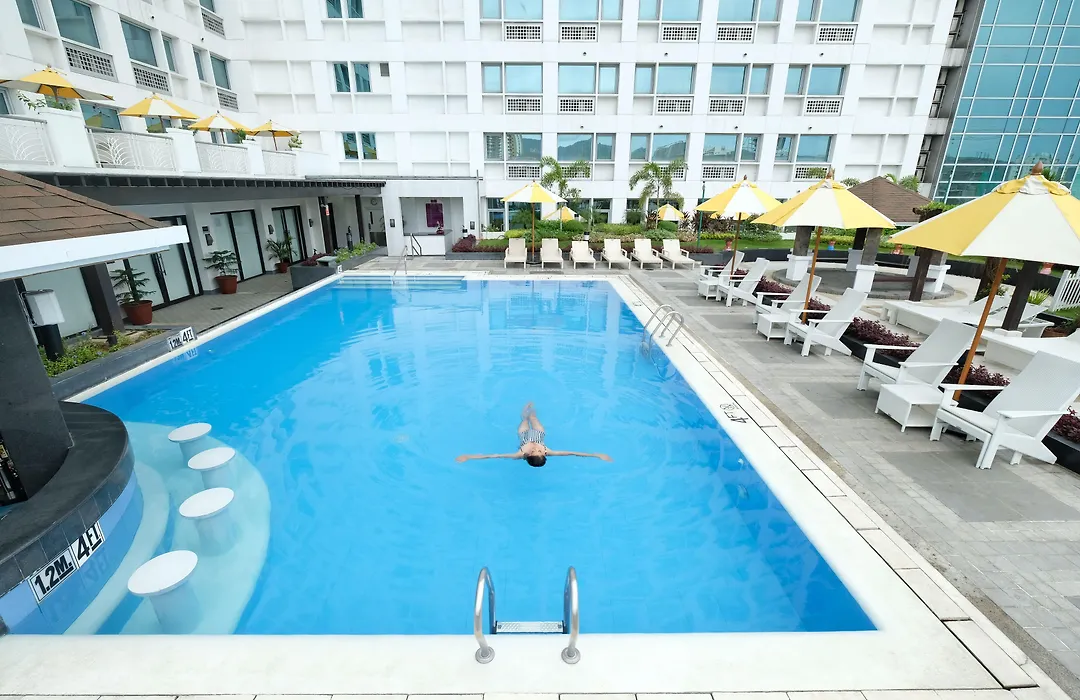 Some of the 427 air-conditioned rooms as the Quest Cebu face the garden and comprise a balcony and a dressing room. A walk-in shower and a separate toilet, along with bath sheets and bathrobes, are provided in the bathroom.